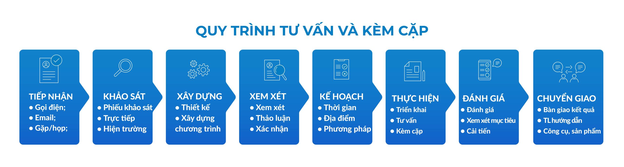 Khi đồng hành cùng chúng tôi, Quý khách hàng luôn nhận được những dịch vụ được cung cấp với chất lượng cao nhất, khả năng ứng dụng vào thực tiễn tạo ra kết quả nhanh chóng, mọi vấn đề của Quý khách sẽ được chúng tôi lắng nghe sâu sắc, thấu hiểu và giải quyết một cách hiệu quả.